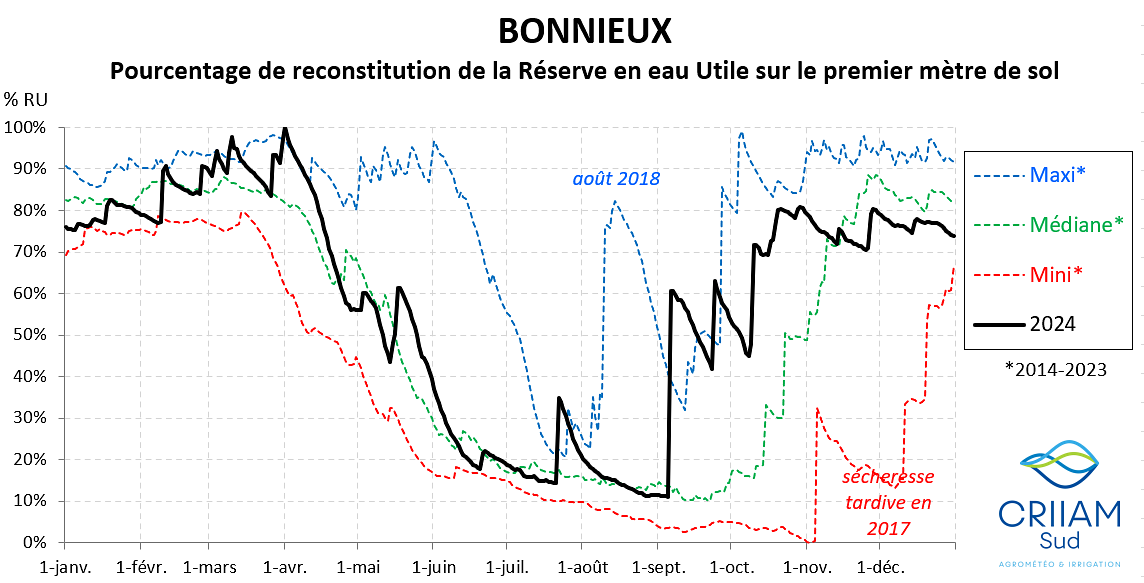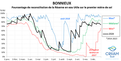 Lorsque l’on dispose de plusieurs années d’historique sur le même site, on détermine si la recharge hydrique du sol est exceptionnelle ou pas à un instant donné, en fonction des années passées.