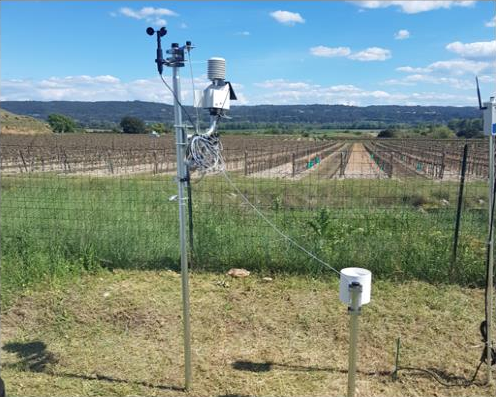 Température, humidité relative de l’air, humectation, pluie, vitesse et direction du vent, rayonnement global.